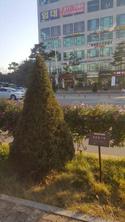 '류준열숲 1호'는 수원시 중에서도 자동차나 버스가 많이 다니는 수원시 영통구청 앞 도로변에 만들어 졌어요. 숲에는 자동차나 버스, 트럭에서 나오는 나쁜 매연과 추위를 잘 견디는 '주목'이라는 나무가 심어졌어요.