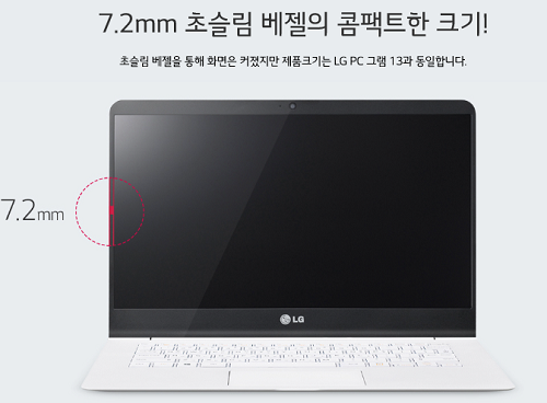 둘째는 전작인 그램 13의 베젤 두께다. 그램 13은 4.4㎜ 두께의 베젤로 출시됐다. 이는 그램 14의 외부 베젤의 두께와 유사하다.