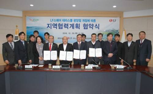 지난 29일 LF스퀘어에서 광양시(시장 정현복)와 광양시의회(의장 송재천), (주)LF네트웍스(대표이사 김민호), 광양지역경제활성화운동본부(상임대표 백윤식)가 참여한 가운데 가진 협약식은 지난 11월에 제정된 '광양시 대형유통기업 지역기여 권고 조례' 제6조에 근거한 것으로, LF측이 지역 중소상인 보호와 지역경제의 지속성장을 위해 지역협력계획을 성실히 이행할 것을 담보하는 광양시의 후속조치다.