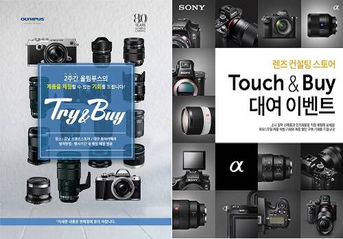 올림푸스한국과 소니코리아는 체험 이벤트를 실시하고 있다. 부담 없이 고가의 카메라 바디와 렌즈를 대여해 일정 기간 사용해보고 구매 결정을 할 수 있다는 점에서 소비자들의 큰 호응을 얻고 있다.