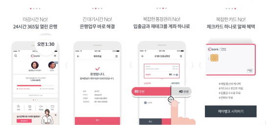 케이뱅크가 필두로 내세운 고객 서비스는 한 차원 업그레이드된 비대면 거래 서비스로 은행에 대한 상식을 재정립해 기존은행과 다른 새로운 은행 '뱅크 에브리웨어'를 표방하고 있다.