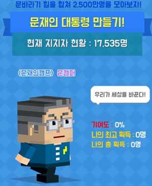 여기 보태 "지난 총선 시점에 '픽미 업'이라는 게임을 만들어 선거 독려를 좀 더 재미있게 풀어보고자 했었고, 촛불집회와 탄핵을 거치며 문 후보가 대통령이 됐으면 하는 마음에 '문재인 대통령 만들기' 게임을 출시했다"고 부연했다.