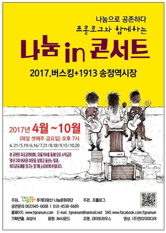 투게더광산 나눔문화재단이 주최하고 프롤로그가 주관하는 '나눔IN콘서트'는 지난해 3월부터 매달 셋째 주 월요일에 진행됐다. 희망을 잃은 사람들이 스스로를 포기하지 않도록, 힘과 용기를 주기 위해 기획되었다. 나눔의 가치를 문화콘텐츠에 접목한 새로운 시도이다.