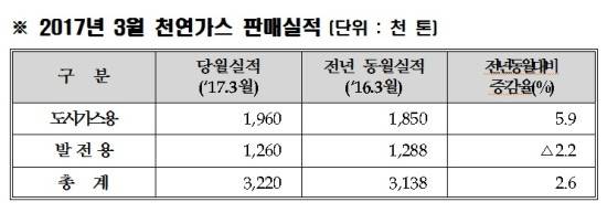 [프라임경제] 한국가스공사(036460)는 지난달 천연가스 판매량 322만톤을 기록해 전년동월에 비해 2.6% 증가했다고 11일 공시했다.