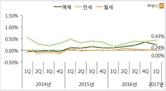 ◆1분기 매매·전세 가격 상승...월세변동률 제자리