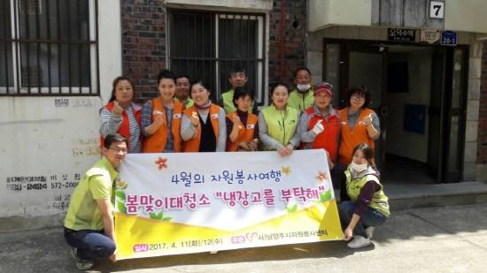 남양주시자원봉사센터(이사장 이석우)는 봄맞이 대청소 봉사활동인 '냉장고를 부탁해'를 11일, 12일 이틀간 독거어르신, 조손가정, 취약계층 10가구를 대상으로 진행했다. 4월의 자원봉사여행으로 진행된 '냉장고를 부탁해' 행사는 남양주시자원봉사센터 법인설립 10주년을 기념해 4월 한 달 동안 많은 시민과 자원봉사자들이 다양한 자원봉사활동에 참여할 수 있도록 마련한 특별한 나눔 릴레이 활동.