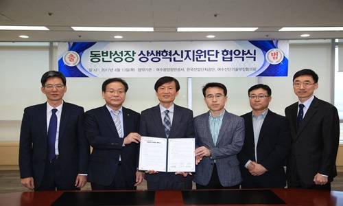 13일 광양항 월드마린센터에서 한국산업단지공단 여수광양지사(지사장 김옥선), 여수산업단지기술부장협의회(회장 최용석)와 함께 중소기업과의 동반성장을 위한 '상생혁신지원단' 발대식을 가졌다.
