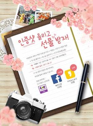 개막일인 14일부터 오는 23일까지 박람회 공식 페이스북과 카카오스토리에 올라온 'SNS 이벤트 공지 게시물'에 댓글로 박람회장 내에서 찍은 인증사진과 함께 응원글, 좋아요 누르기, 공유하기를 하면 되고, 추첨을 통해 모두 150명(페이스북 100명, 카카오스토리 50명)에게 CU편의점 기프트콘 3000원권을 증정할 계획이다.