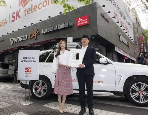 [프라임경제] SK텔레콤(017670·사장 박정호)이 삼성전자의 새 전략 스마트폰 '갤럭시S8' 사전예약 개통 행사에 자사 커넥티드카 'T5'를 등장시켜 눈길을 끌었다.