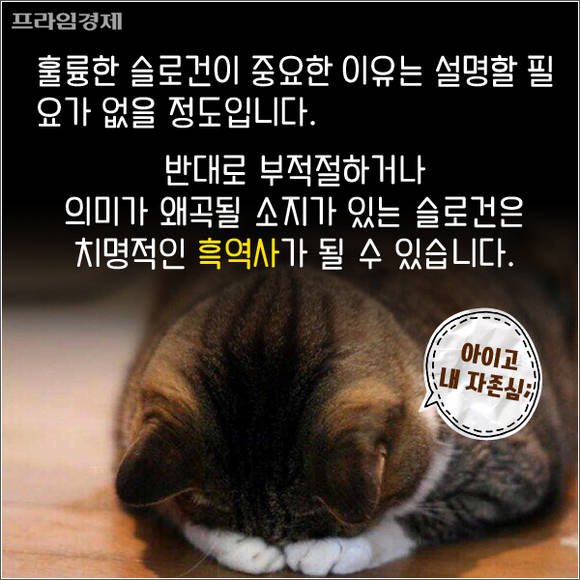 훌륭한 슬로건이 기업과 특정 인물을 얼마나 돋보이게 하는지는 일일이 설명이 필요없을 정도다. 반대로 부적절하거나 아예 의미가 왜곡될 소지가 있는 슬로건은 치명적인 '흑역사'로 남을 수 있다.