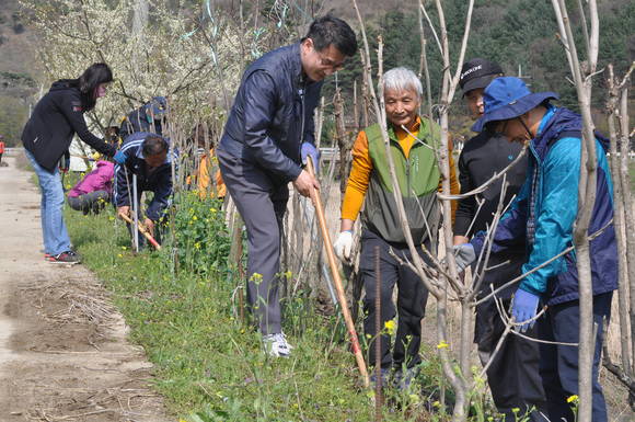 올해에도 작년에 이어 벚나무를 천변 500m 구간에 식재하고 마을주민들이 깨끗한 환경에서 생활 할 수 있도록 환경정화 활동을 펼쳤다.