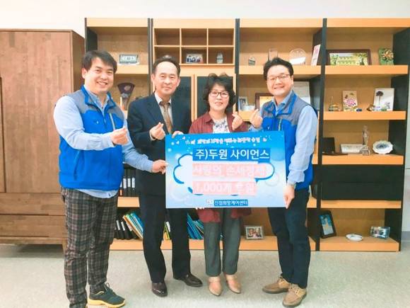 [프라임경제] 남양주시(시장 이석우) 진접읍에 소재한 ㈜두원사이언스(대표 김경희)는 지난 21일 남양주시 관내 저소득가정과 소외계층의 위생안전을 위해 사랑의 손소독제 1000병을 북부희망케어센터에 전달했다.