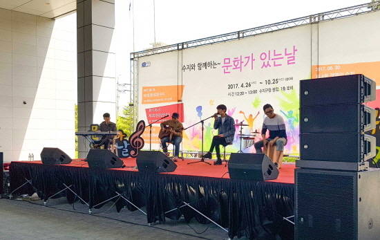 수지구는 오는 10월까지(혹서기인 7월 제외) 매달 마지막 주 수요일 문화가 있는 날 점심시간에 수지구청 광장과 로비에서 각종 문화공연을 개최할 계획이다.