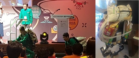 27일 상암동 누리꿈스퀘어에서 열린 제2회 미래성장동력 챌린지데모데이(이하 챌린지데모데이) 최우수상 수상작인 '파이언맨'을 체험한 이들의 반응이다.