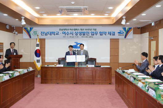 전남대학교와 여수시는 28일 '상생발전 업무협약'을 체결했다. 두 기관은 이날 협약을 통해 전남대학교 여수캠퍼스 100주년을 맞아 지역사회와 대학의 공동발전을 위해 상호 긴밀하게 협력하기로 약속했다.