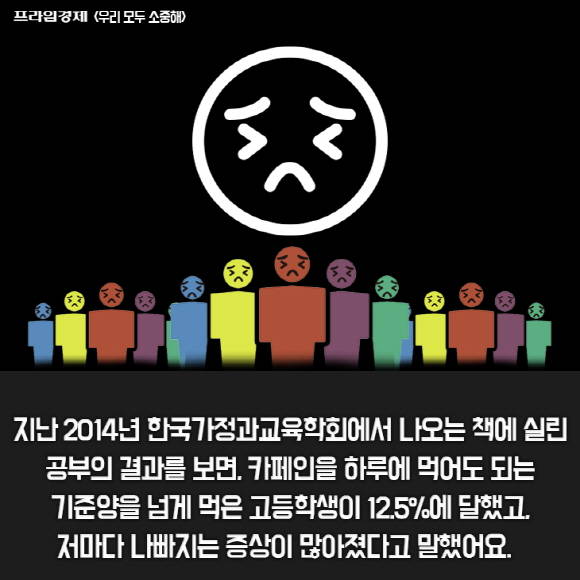 [프라임경제] '우리 모두 소중해' 캠페인의 재능기부 편집위원으로 참여하는 청소년 학생들은 발달장애인들의 감수를 거친 [우리모두뉴스] 기사를 [카드뉴스]로도 제작합니다. 이번에는 제주국제학교인 브랭섬홀 아시아(BHA : Branksome Hall Jeju) 10학년 윤소정 학생이 '카페인이 너무 많은 음료수를 학생들이 마신다면?' 기사를 카드뉴스로 제작했습니다.