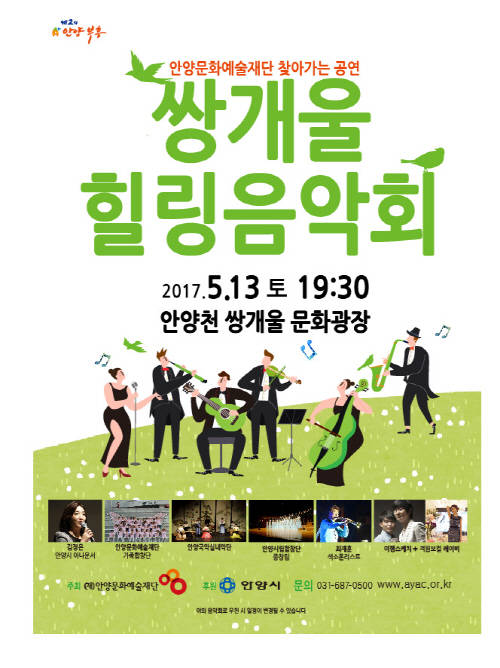 [프라임경제] 안양시(시장 이필운)는 오는 13일 토요일 오후 7시부터 2시간 동안 쌍개울 문화광장 특별무대에서 '2017 구석구석 마중콘서트'공연을 개최한다.