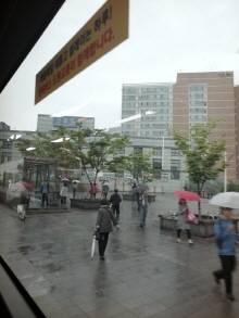 우여곡절 버스에 탑승했지만, 싱숭생숭한 마음을 감출 길 없어 비 오는 풍경 한 컷을 찍었는데요. 나중에서야 사진을 확인하니, 그때는 미처 보지 못했던 창문 위 문구를 발견했습니다.