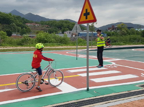 또한 자전거 안전교육장에서는 노면에 그려진 주행 코스를 달리며 올바른 주행방법 및 정지선 준수사항에 대해 배우고 초등학생들에겐 낯선 자전거 횡단도 노면 표시, 안전 표지판 등을 체험하며 안전한 도로주행을 익혔다.