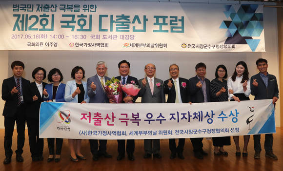 시상자로 무대에 오른 김홍장 당진시장은 "중앙정부와 지자체, 민간기업 등 모두의 노력이 더해진다면 저출산 문제를 해결할 수 있을 것"이라며 "앞으로도 지역 맞춤형 출산 정책을 힘있게 추진해 지속성장 가능한 국가경쟁력 확보에 힘을 보태겠다"고 소감을 밝혔다.