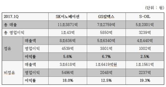S-OIL은 1분기 영업이익 3239억원을 기록했다. 정유 부문에서 영업이익이 1002억원으로 매우 저조했으나 윤활기유 및 석유화학사업을 합친 비정유 부문에서 2237억원의 영업이익을 거두면서 하락 폭을 줄일 수 있었다. S-OIL의 비정유사업은 매출 비중은 30% 정도에 불과하지만 영업이익은 전체 수익의 약 70%에 달한다.