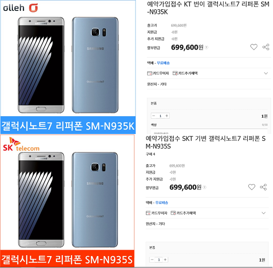 4일 업계에 따르면 일부 SKT(017670)·KT(030200) 온라인 공식 대리점이라 주장하는 일부 판매점들이 출고가가 확정되지 않은 갤럭시노트7 리퍼폰을 추측가인 69만9600원에 예약가입 받고 있다.