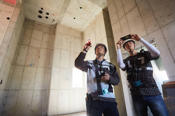 건설 현장에서 안전환경 관련 개선 및 예방조치가 필요한 상황이면 누구나 즉시 휴대전화로 사진을 찍고 내용 입력이 가능하다.