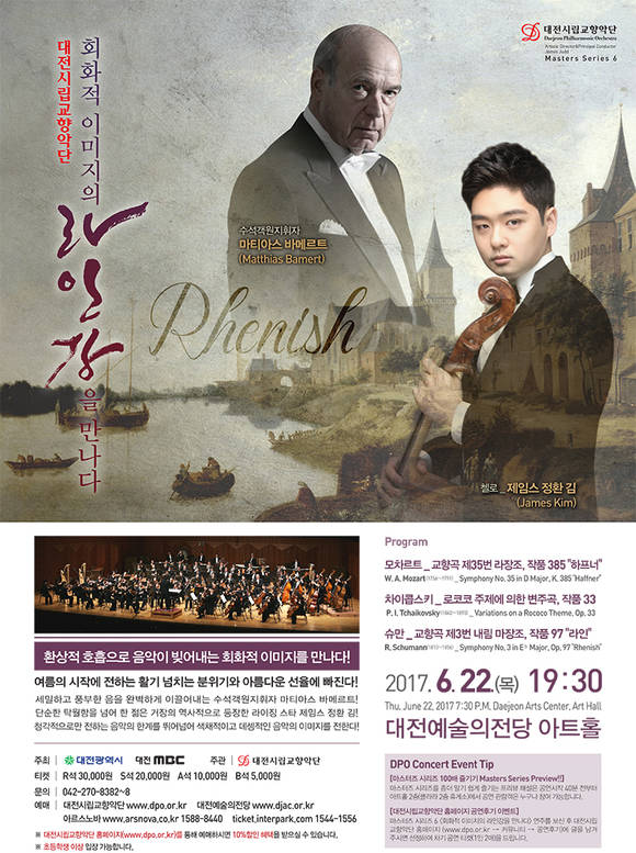 [프라임경제] 대전시립교향악단이 22일 대전예술의전당 아트홀에서 '회화적 이미지의 라인강을 만나다!'라는 부제로, 마스터즈 시리즈 6번째 공연을 갖는다.