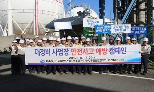 8일 주철현 여수시장과 여천NCC(주) 임직원, 여수산단공동발전협의회 및 협력업체 직원들은 안전의식 강화와 사고예방을 통한 성공적인 대정비 작업을 추진하기 위해 캠페인에 적극 참여했다.