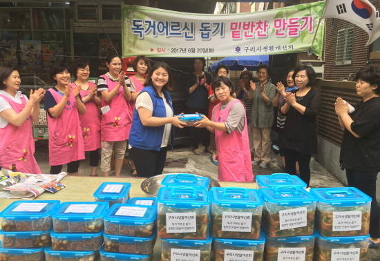 이날 밑반찬 나눔 봉사에는 생활개선회 20여명의 회원이 참여하여 정성껏 만든 열무김치, 소고기 장조림 등을 구리사회복지관을 통해 홀몸어르신 가정에 전달했다.