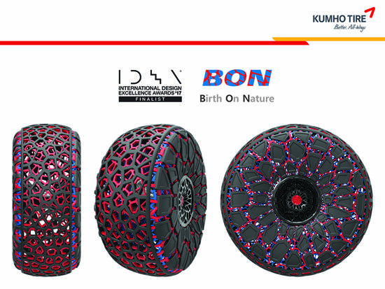 금호타이어가 수상한 제품은 미래 지향적 기술력을 담은 콘셉트타이어인 '본(BON, Birth On Nature)'이다.