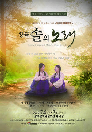 [프라임경제] 광주시립창극단이 광주학생독립운동 88년을 기념해 제50회 정기공연 창극 '솔의 노래'를 7월 6일과 7일 오후 7시 30분 광주광역시 문화예술회관 대극장 무대에 올린다.