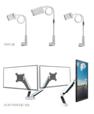 모니터거치대 2종은 모니터 거치가 간편하고 상하좌우 어떠한 각도로 사용이 가능한 것이 특징이다. 듀얼모니터암(MMB-D7)과 싱글모니터암(MMB-S9) 중 원하는 모니터 수량에 맞게 선택할 수 있으며, 색상은 화이트와 블랙 색상의 심플한 디자인을 선보였다.