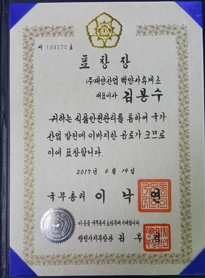 이와 함께 식품안전관리의 품질 향상과 위생문화를 선도하고 식품산업 발전에 기여했다.