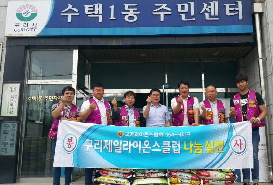 올해 27주년을 맞은 구리제일라이온스클럽은 7월1일자로 회장 이·취임식 기념행사를 진행하면서 수택1동 관내 저소득계층을 위해 축하 화환 대신 쌀 화환을 받아 사랑의 의미를 담아 전달했다.