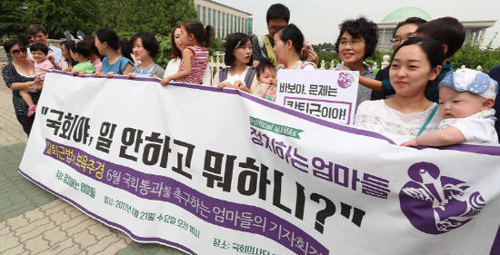 엄마들은 문재인 대통령의 '더불어 돌봄제'에 대해서도 믿음을 갖지 못하고 있어요. 엄마들은 "아이를 낳고 쉬면서 직장으로부터 월급을 받는 문제보다 아이를 낳고 편히 쉬는 환경이 되야 한다"며 "아이를 낳고 쉬게 되는 직원을 대신해 그 기간 동안 일할 직원을 새로 뽑는 것이 법으로 정해져야 한다"고 주장했어요.