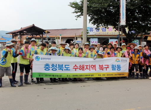 이 날 복구활동은 국제구호개발 NGO 휴먼인러브와 금천구자원봉사센터가 함께 자원봉사자 50여명을 이끌고 수해현장(청주시 상당구 미원면)을 찾아 침수가옥을 정리하고, 쑥대밭이 되어버린 인삼밭을 정리하는 활동을 실시했다.