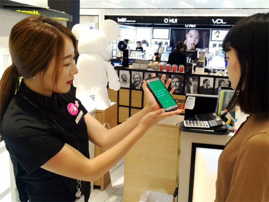 이 신세계면세점이 네이버가 만든 통역 어플리케이션(줄여서 '앱'이라고도 하지요)인 '파파고'를 이용해 외국인 관광객의 쇼핑(물건을 사는 것)을 돕고 있어요.
