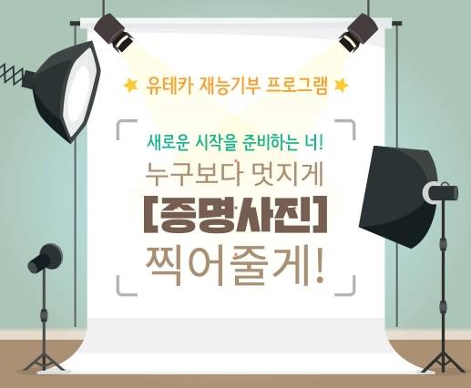 [프라임경제] 청소년 특별활동 소셜네트워크 '유테카'가 취업을 준비하는 청년·청소년들을 위해 이력서에 붙일 '증명사진 찍어줄께' 재능기부 이벤트를 진행한다.