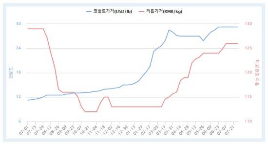 한국광물자원공사 한국자원정보서비스에 따르면 배터리 핵심 소재인 코발트 가격은 지난해 같은 시기와 비교해봤을 때 파운드당 12.05달러에서 현재 29.25달러로 두 배 이상 상승했다. 또 다른 핵심소재인 리튬 역시 수급 불균형으로 최근 지속적으로 가격이 인상되고 있다.