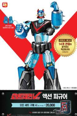 태권V 피규어는 약 25㎝ 높이로 팔·다리 등 움직임을 통한 변화가 가능해 총 14개 관절이 움직이는 액션 피규어다.