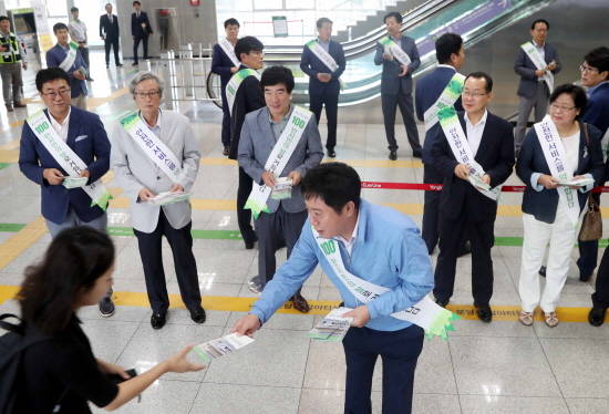 정 시장은 캠페인에 이어 기흥역에서 경전철을 타고 시청으로 출근하면서 시민들과 경전철 이용에 대한 애로사항을 듣는 등 시민들과 대화를 나눴다.