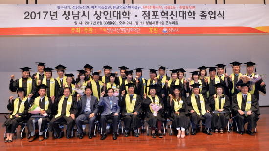 [프라임경제] 지난 30일 경기 성남시(시장 이재명) 청사 온누리에서 열린 '2017년 상인·점포혁신 대학 졸업식'에서 214명이 학사모를 썼다. 상인대학 졸업생은 148명, 점포혁신대학 졸업생은 66명이다.