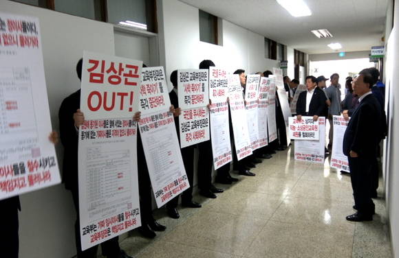 [프라임경제] 학교법인 상지학원 등기이사 7명과 상지사랑모임 회원 20여명은 지난 8월31 상지학원 이사장실 앞에서 "지난 8월4일 파견된 임시이사들을 가짜이사들"이라면서 이들의 퇴진을 요구했다.