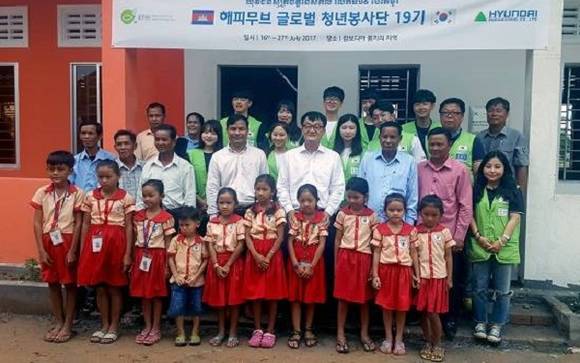 한편 이번 사회공헌은 현대자동차그룹의 '해피무브 글로벌 청년봉사단 19기' 100명과 국제구호단체 '기아대책'도 함께했어요. 이들은 지난 7월에 학교 신축공사에 참여했고 음악, 미술, 체육 활동 등 교육봉사와 태권도, 민속무용, K-POP 등 문화공연으로 캄보디아 학생들, 주민들과 서로 친해지는 시간을 보냈어요.