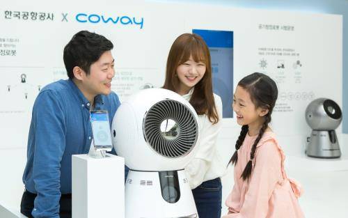 코웨이는 지난 6월 한국공항공사와 '로봇 시험 서비스 도입을 위한 업무협약'을 체결하고 유동 인구가 많아 실내공기질 관리가 필수적인 공항 터미널에 쾌적한 공기를 제공하고자 자율이동과 공기청정이 가능한 로봇공기청정기 시범서비스를 선보이기로 했다.