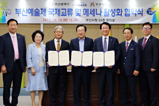 협약에 따라 에어부산은 올해부터 매년 부산예술제 행사에 부산시의 자매결연‧우호협력도시 초청 시 항공편을 지원하기로 했다. 이에 따라 부산예술제 참석이 보다 용이하게 돼 해외 도시 예술단 초청이 더욱 활발해질 것으로 보인다.