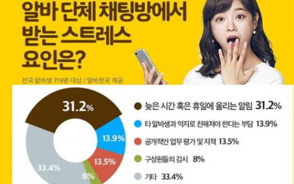 [프라임경제] 여러명이 대화를 할수 있는 인터넷 공간을 '단체 채팅방'이라고 해요. 이 단체 채팅방에 대한 아르바이트생들의 어려움도 일반적인 회사를 다니는 직장인 만큼 큰 것으로 나타났어요.