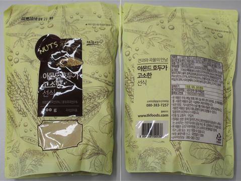회수 대상은 유통기한이 내년 8월23일인 아몬드 호두가 고소한 선식 제품이다. 식약처는 관할 지자체에 해당 제품을 회수하도록 조치했으며 해당 제품을 구매한 소비자는 판매 또는 구입처에 반품하면 된다.