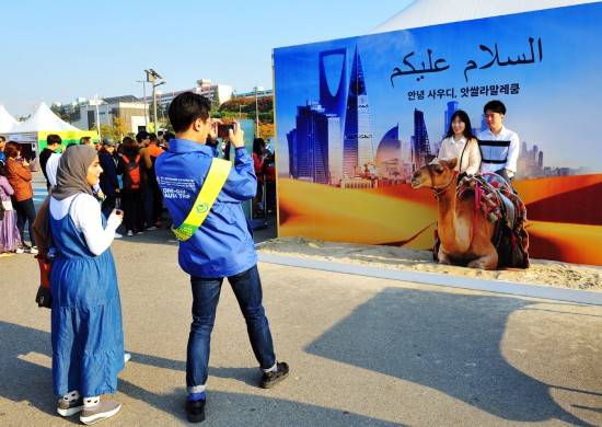 이날 행사는 △사우디 전통음식 맛보기 △의상입기 △헤나 문신 △아라빅 캘리그라피 등 다채로운 체험 프로그램과 함께 양국 가수들의 축하공연으로 구성됐다.